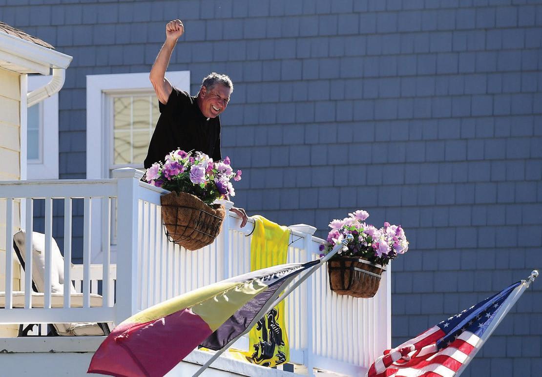 In town, no race party was more legendary than that of Tom and Jackie Boyan of 321 Monmouth Ave. Reminiscing, their son Tommy Boyan, who still lives in the family home, recalled how their party grew with the race. “The first year we had a half a keg of beer and a six pack of hot dogs with some left over,” he says. “Twenty years later, we had 24 kegs, 400 hamburgers and 400 hot dogs, and a few thousand guests. We had a Super Bowl quarterback, Neil O’Donnell, and an Oscar winner, Timothy Hutton. The street was closed, and the DJ or band played. I have a bench in front of the house that reads, ‘Tom & Jackie Boyan the greatest hosts of the biggest 5-mile race party this town will ever see.’”