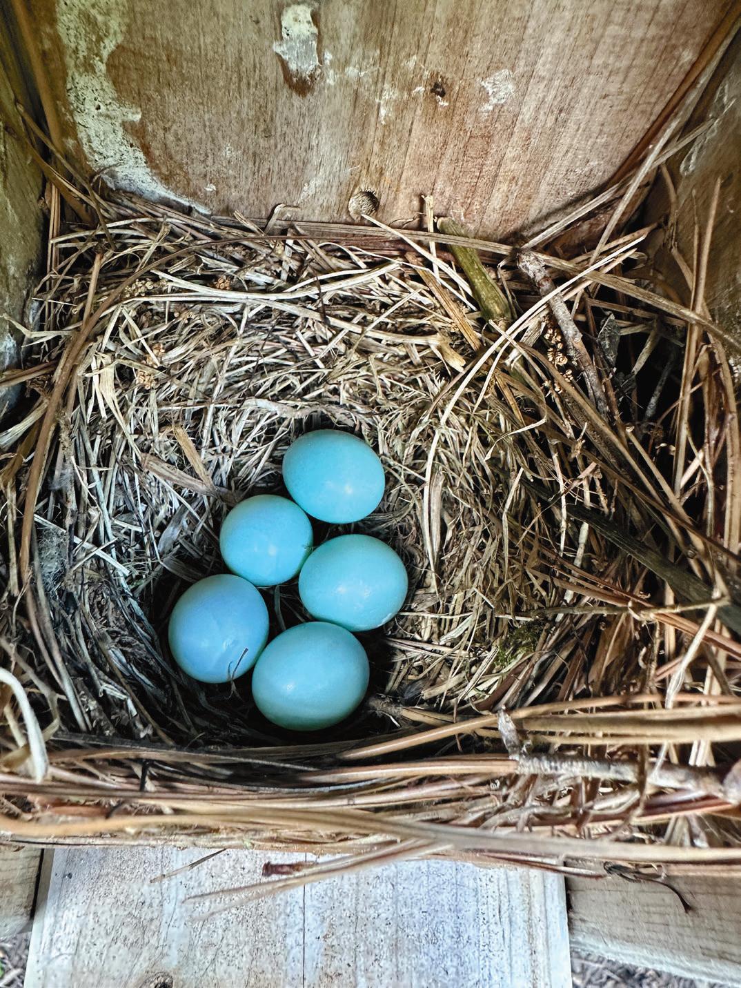 I am constantly entertained by the Eastern Bluebirds’ life cycle. Watching a pair investigating a box then building a nest to feed and care for babies is simply fascinating. I hope you, too, will add a nesting box to your yard and enjoy Eastern Bluebirds.