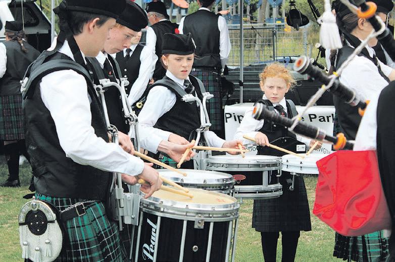 RIGHT: The young pipers and drummers warm up ahead of the solo competitions at Pipes in the Park in Wellington.