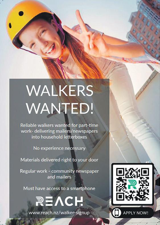 $670 Delivery & GST included, Winz Approved FIREWOODSUPPLIES.CO.NZ 06 306 9110 For Sale Opening Hours: Tues, Wed, Thurs 7:30 - 5pm For all your iron and roo ng needs call 34 Dale eld Road, Carterton Email: admin@CtnCF.co.nz Gardening & Landscaping Paul August Landscape Design Landscape Consultation & Design Service 027 446 8256 august.landscape@orcon.net.nz www.augustlandscapes.co.nz Public Notices Missed Your This week or had a late delivery? CALL 06 378 9999 option 5 TO VIEW ONLINE times-age.co.nz/e-editions/ midweek-e-edition GET READY GET THRU www.getthru.govt.nz Place a classified notice on this page | Phone: 06 370 6033 | Email: classads@age.co.nz | WALKERS WANTED! Reliable walkers wanted for part-time work - delivering Wairarapa Midweek into household letterboxes No experience necessary Materials delivered right to your door Regular work - community newspaper and mailers Must have access to a smartphone Buy two adverts in the Times-Age and get a FREE advert in the Midweek. Don’t delay, contact us today 06 378 9999 Op2 or email classads@age.co.nz Get the word out with a Times-Age Employment Package Trying to find the right fit?