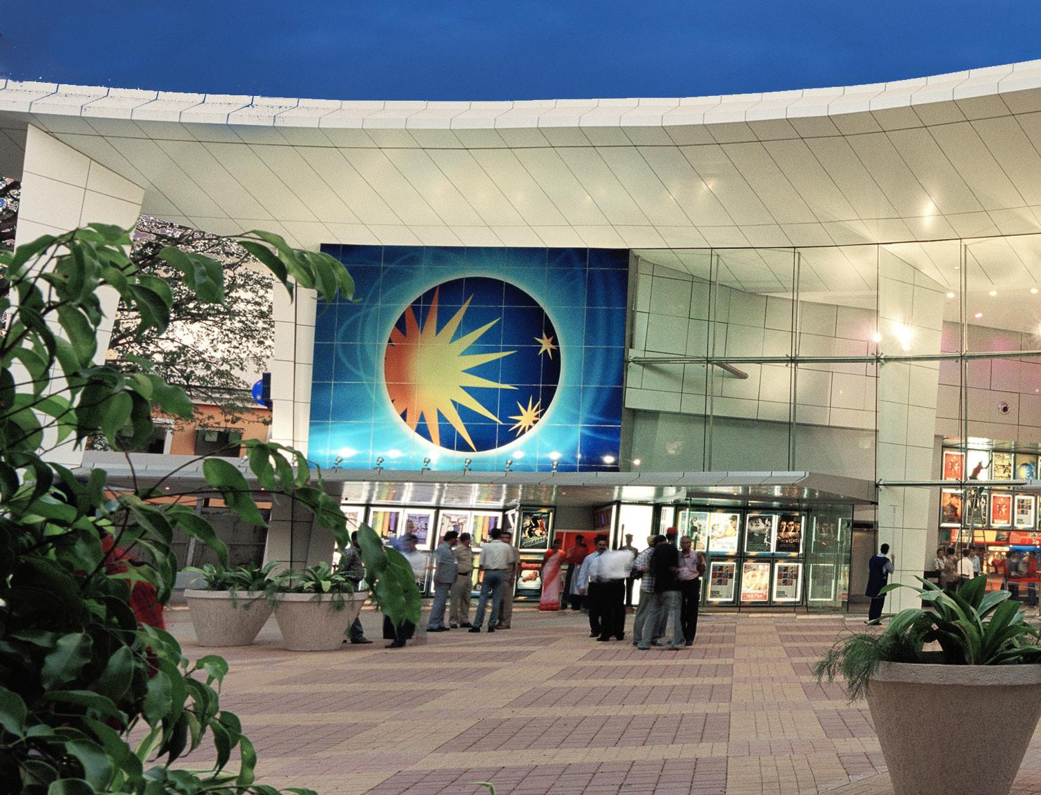 In 2012 for its “innovative and unique Structure as designed by Walker Group Architects keeping the character of Pune” Blurring the lines between entertainment and retail mall, the 8 screen multiplex is on the 3rd floor to one side of a spectacular atrium formed under a dome. On the same floor as the multiplex is typically a cafe court and restaurant bars which step down into a landscaped oasis.