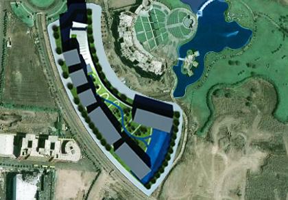 Seperated by a main road into Amanora Park Town. The ground sweeps up as one curve from each side to give a recognisable simple iconic form, creating a gateway to the Park Town. The landscaping of this man made continuation of the ground is indicative of the sweep from the valley lake up to the mountains.Floating above and punctuating through this sweep are individual recognisable simple apartment blocks. Each with separate atrium entries. Although these work together with the total