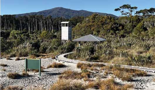 Above right: The boardwalk on the Okarito Trig Walk.