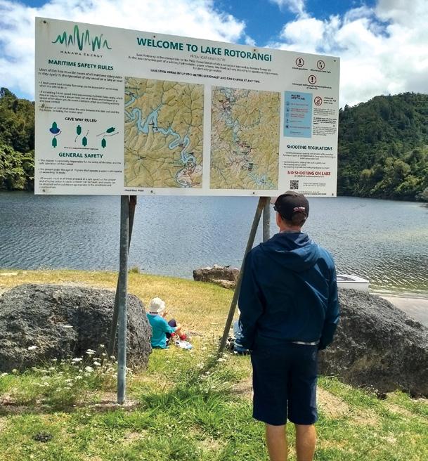 Dam signage offers a lot information about its construction and capacity. The lake was created by damming the Patea River.