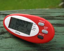 The H-215, 4-function pedometer is a superb, reasonably priced pedometer that counts steps, calculates distance, calories burned and has a 12/24 hour clock. This is the model that has sold over a quarter of a million worldwide. It has the largest display of any pedometer we tested and is very accurate.