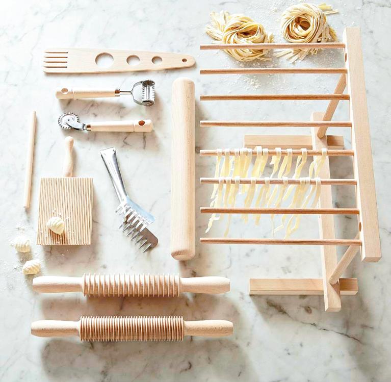 For those who cherish the artistry of Italian cuisine, there’s something profoundly satisfying about crafting fresh pasta by hand the traditional way. Imagine the tactile pleasure of rolling delicate sheets of dough and skillfully shaping them into various pasta shapes guided by tools designed for perfection. Made in Italy with a commitment to craftsmanship, this set includes everything you need to embrace this culinary ritual, from cutters for various pasta forms to clear instructions that make the process approachable for beginners and purists alike. Pasta starter set. $115. williams-sonoma.ca