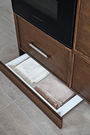 Functionality was equally important. The island now includes ample storage, efficient pull-out garbage and recycling bin, and soft-close, mechanisms for all drawers and doors. These purposeful features add a serene, user-friendly quality to the kitchen.