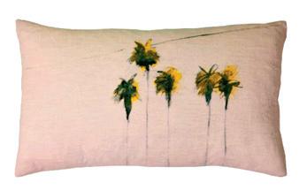 Custom upholstered headboard using the same fabric as our bench at the foot of the bed provides a great backstop for the bed. Headboard fills the tall ceiling with some texture & nice layering which eliminates the need for artwork.