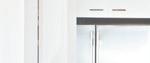 The island now commands the space. Clad on deluxe Onyx panels, it has the look of fine furniture and beautifully contrasts with the supermatte white cabinetry throughout the rest of the kitchen. The island’s spacious quartz countertop in soft white, accented with subtle grey veining, unifies the space, complemented by a matte white herringbone backsplash with matching grout.