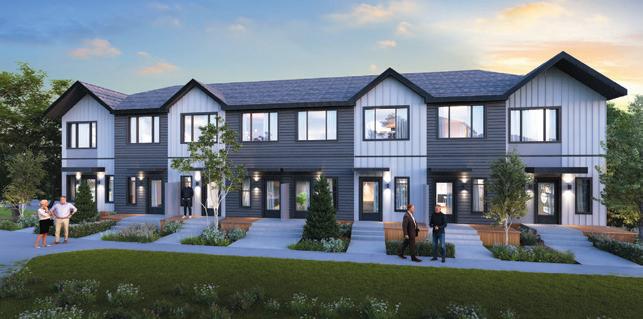 One of the new front-attachedgarage duplex showhomes is The Franklin, a 1,774-square-foot, threebed, two-and-a-half bath model in Sirocco. It’s a great option for a first-time homebuyer with a young family, or even a homebuyer looking to upgrade from a traditional duplex or laned home. The open to below of the Franklin also adds in a sense of space that is typically only found in a traditional front garage home.
