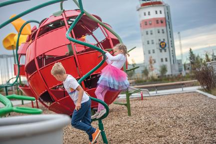 down the Blatchford pipeline this year. Plans are underway to transform the base of the former airport control tower – already a distinguishing piece of architecture in the community – into a usable community space.