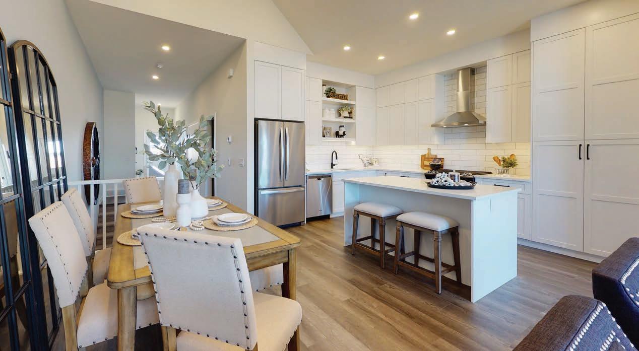 Front garage model, the Encore, is 2,207 square-feet with three bedrooms and two-and-a-half baths. It features a 761-square-foot legal basement suite development with two bedrooms to highlight the home’s full potential.