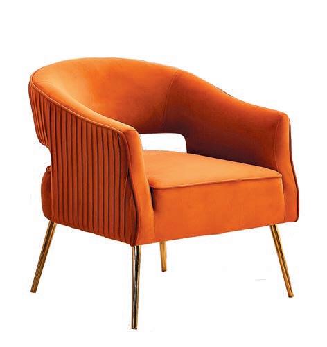 1. Juno velvet PILLOW. anthropologie.com | 2. Chynna upholstered ARMCHAIR wayfair.ca | 3. Orange coffee break ARTPRINTDUO. simons.ca | 4. Chuck Hughes cast iron BRAISER. thebay.com | 5. Shinola No. 2 sea salt, jasmine, and rosemary scented CANDLE. crateandbarrel.ca 5