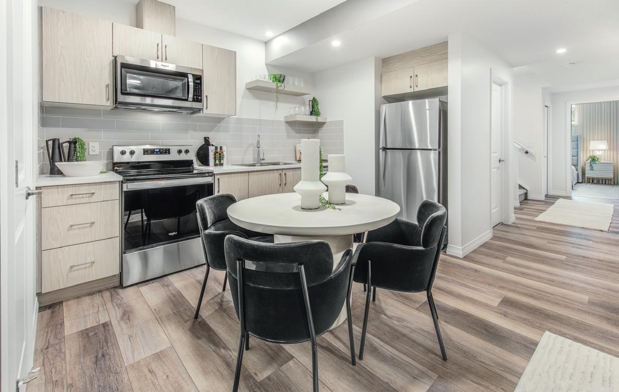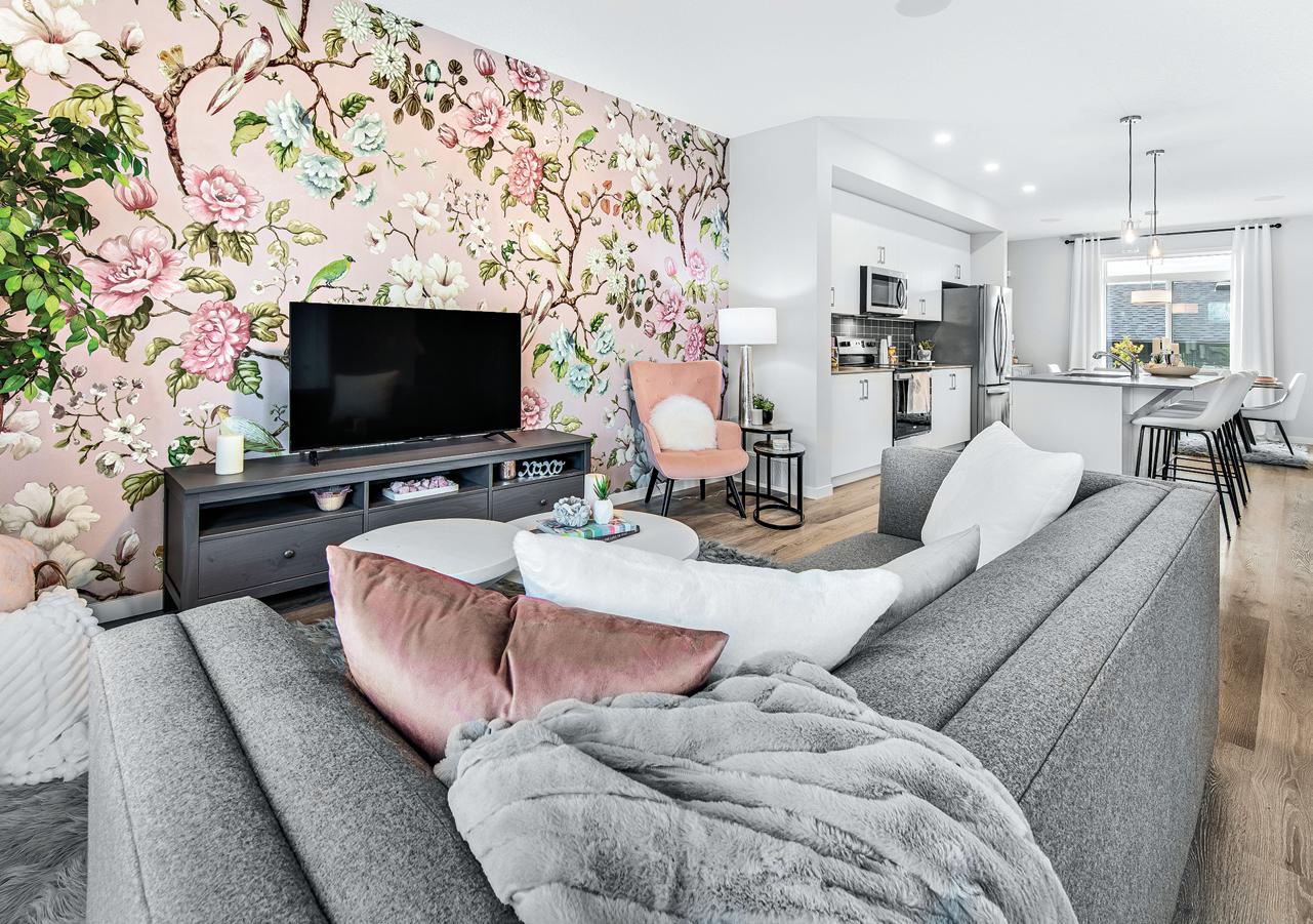 New is their townhomes in Riverside, St. Albert. “The Aspen has a bright and open concept main floor that brilliantly uses all available space,” Sparrow says.