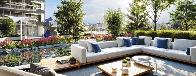centre and yoga studio, a fireside lounge with a chef’s kitchen, formal dining area and two guest suites. The fifth-level terrace boasts a grand lawn for picnics or bocce ball, covered outdoor cabanas for finding a shady reading spot in the summer, plus a kids’ playground. And for your four-footed family members, there’s the Paws and Play dog run on the second level—seems like Ledingham McAllister has thought of everything.