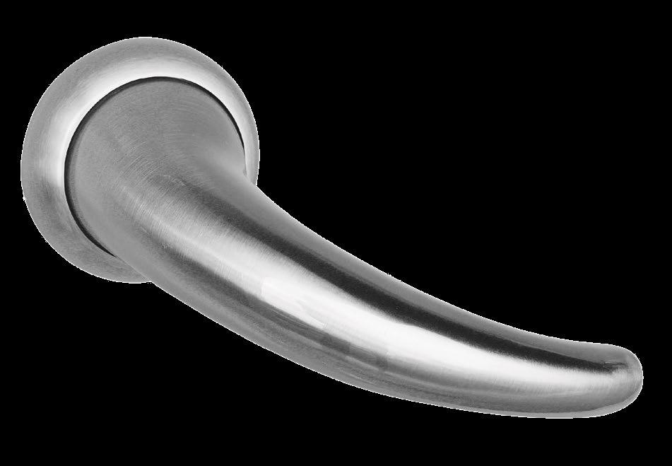 Roestvaststalen suïcidepreventieve deurkruk, type ‘Hoorn’ op rozet.
