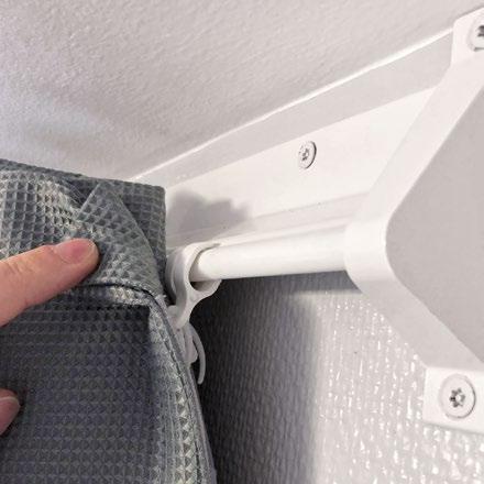 Suïcidepreventieve gordijnrail voor verduistering of douche.