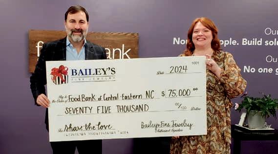 Bailey’s Fine Jewelry recently donated $75,000 to the Food Bank of Central & Eastern North Carolina. The funds were raised through its “Share the Love” campaign, which donates funds for 250 meals, enough to feed an entire North Carolina family of four, every time an engagement ring is purchased from one of its stores.