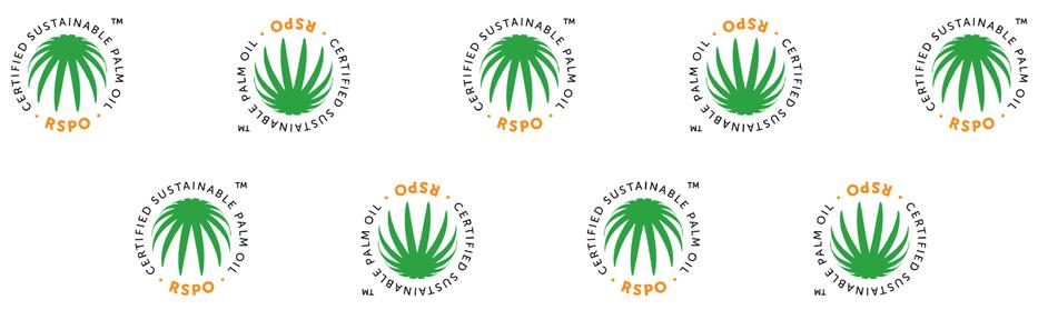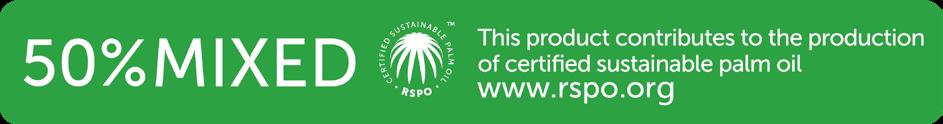 • At least 50% of the palm oil content has been supplied through an RSPO certified supply chain as IP, SG, and/or MB.