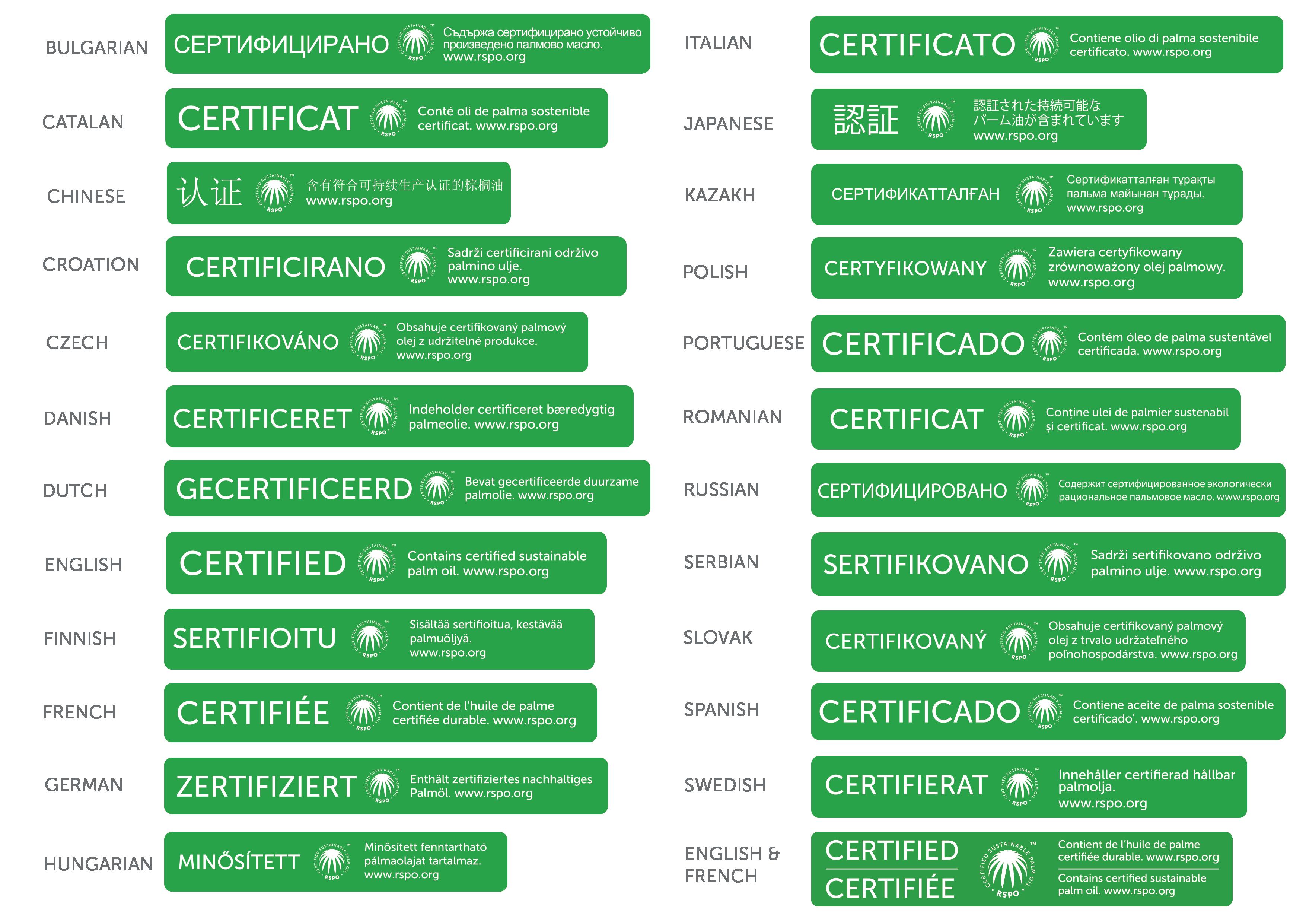 6.8.1 RSPO has translated the RSPO labels into 23 different languages and 1 bilingual label for use by licenced members covering different markets.
