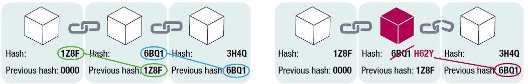 From figure 1, we see that the databases here has a single copy, but duplicated in eachcomputer, and these copies are linked together with an encrypted identification number called HASH, and they can only be changed by modifying the chain of identification numbers. Any change done by the hacker to this encrypted number will change the whole chain, and thusthemodificationisrejectedandIntrusiondetection be alerted
