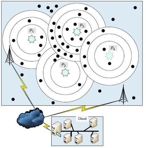 Figure 4: Cloud computing with servers and coverage areas [13]