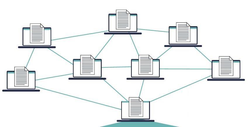 Acopyofthe database iskept inall devices Therefore, there is no mainserver that keepsthe data, but there are a number of copies present on all devices, and automatic synchronization takes place between these devices in the event of modification, but the modification is not easy, because it requires extreme powers and approvals. The data here is encrypted and each part of data has a specific encryption code that cannotbedecryptedorstolen Alldevicesplaytherole
