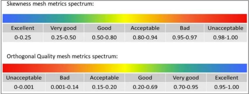 The results of discretization can be seen in the spectrum contained in Figure 4. The average meshing quality produced shows results in the good range based on the skewness parameter values and orthogonal quality output from the discretization process.