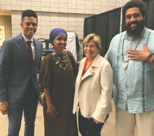 SPEAKING FOR TRUTH: Brandon Wolf (L) with (L-R) U.S. Rep. Ilhan Omar, AFT President Randi Weingarten and self-care guru Reggie Hubbard at Netroots Nation 2022 conference in Pittsburgh Aug. 20. PHOTO VIA BRANDON WOLF’S FACEBOOK