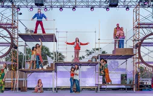 “Through iconic songs like ‘Aquarius’ and ‘Let the Sunshine in,’ the cast voices their dreams for a more harmonious world, united through the universal languages of music, protest, and community,” American Stage has noted. It features Henry Hawes as Claude, EJ Dohring as Berger, Emma Rose Johnson as Sheila, Zoë Grolnick as Jeanie and Joseph Condon as Margaret. Condon, who also performs in drag as St. Genesius, grew up in St. Petersburg watching the park shows. It was always something he wanted to be a part of, so following graduation from the University of Alabama, he returned to St. Petersburg and booked a show with them.