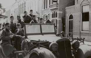 Achter: Duitse militairen kijken kort na de capitulatie vanuit hun voertuigen uit over de Noordzee, bij het Palace Hotel aan de Scheveningse boulevard.