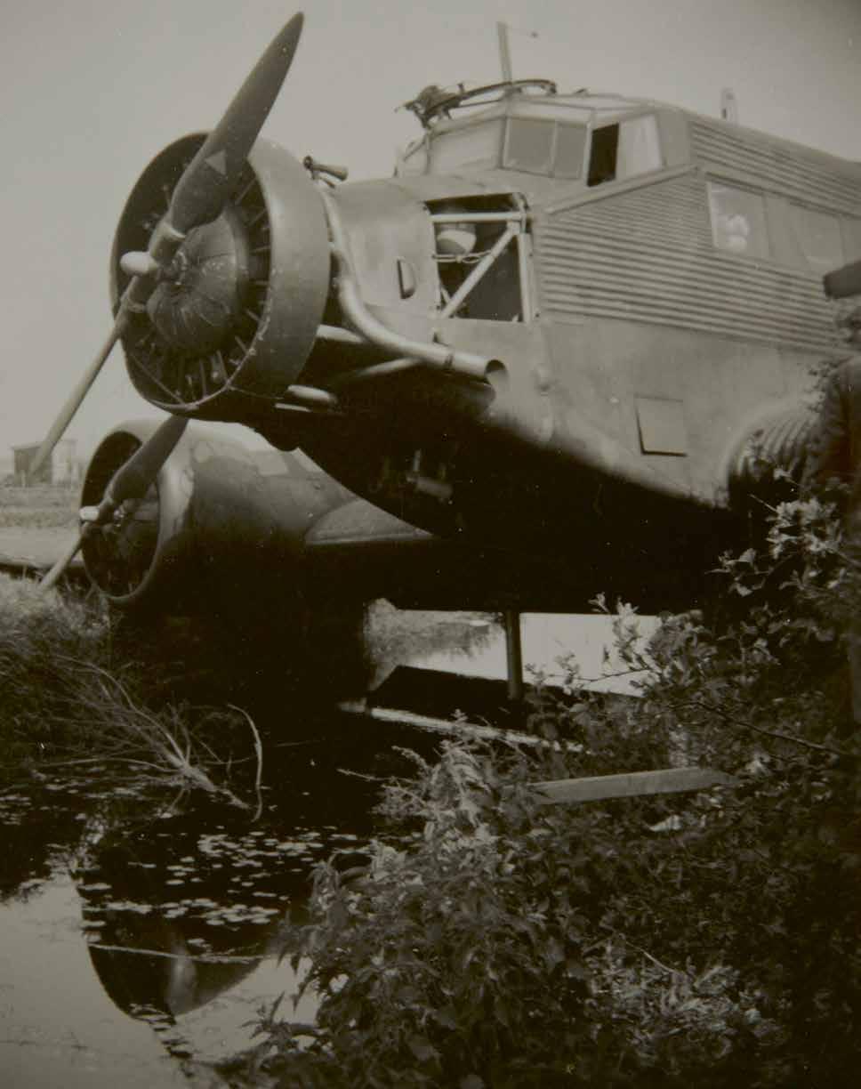 Rijksweg 13 is vooraf aangemerkt als Ausweichstelle Autobahn Delft. Zeker twintig Junkers Ju 52transportvliegtuigen strijken hier op 10 mei 1940 ook daadwerkelijk neer. Sommige toestellen belanden daarbij in de bosschages naast de weg. Dit toestel is daarna bezocht door souvenirjagers, want het paneel met het embleem van de eenheid is inmiddels vakkundig verwijderd. Uiteindelijk weten in de avond van de eerste oorlogsdag weer zes transportvliegtuigen op te stijgen en terug te keren naar Duitsland.