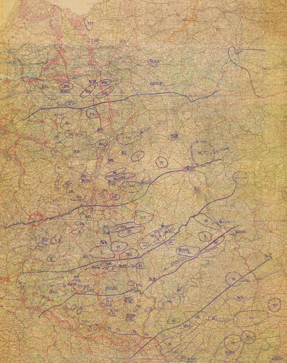 De mei-oorlog in volle gang. Een Duitse stafkaart van de opmars van de Wehrmacht op 12 mei 1940.