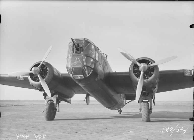 ↓ Een gloednieuwe Fokker T.5 op Soesterberg. Het tweemotorige toestel wordt ontwikkeld als luchtkruiser: een toestel dat langdurig in de lucht kan blijven en met zijn zware bewapening zowel doelen op de grond als in de lucht kan ‘bestrijden’. De eerste van in totaal zestien exemplaren worden in 1938 geleverd. In mei 1940 worden de T.5’s vooral ingezet als bommenwerper waarbij ze kwetsbaar blijken voor Duitse jachtvliegtuigen.