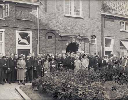 132 Bijeenkomst ter gelegenheid van de herdenking van John Robinson, foto genomen in de Kloksteeg bij de dooppkapel en het Jean Pesijnhof, 1928, Beeldcollectie Erfgoed Leiden en Omstreken. Fotograaf onbekend