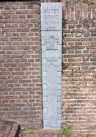 Peilsteen met de verhouding tussen de zeedijkshoogte (lijn) en het stadspeil (in de woorden eronder: ‘negen voet vijf duim boven het stadspeyl’, ofwel 268 centimeter boven het stadspeil).