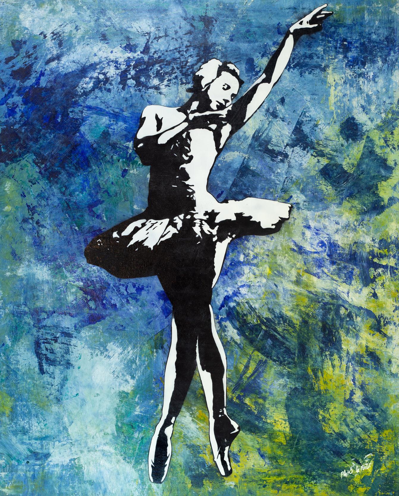 During a trip to South America ten years ago, Blek encountered flamenco and tango dancers in the streets of Argentina. Inspired by their balletic movements and the freedom of their expression, Blek began incorporating dancing figures into his repertoire of characters The artist has explained, "Dance makes me forget the laws of gravity." As a master of stencil design, Blek's dancers beautifully translate the experience of fluid motion into a single moment. When viewed together the works appear as though they are gracefully gliding along the wall.