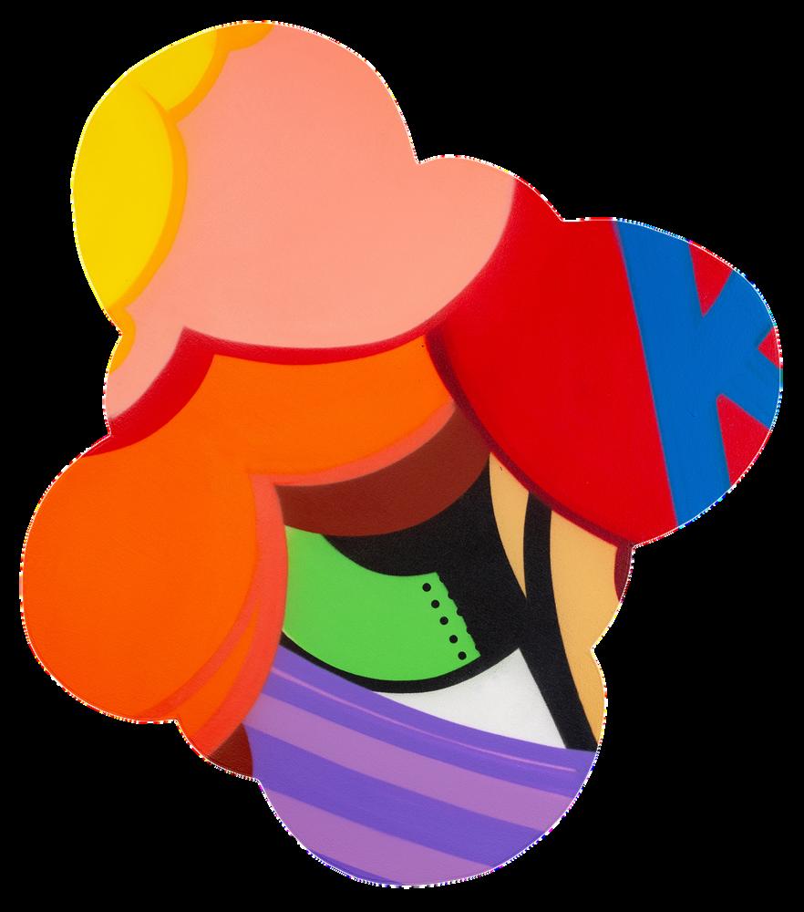 when he began altering found advertisements by incorporating his own masterful paintings. KAWS studied illustration at the School of Visual Arts in New York and went on to work as an animator at Disney after graduating Evoking the sensibilities of Pop artists like Andy Warhol and Claes Oldenburg, KAWS possesses sophisticated humor and thoughtful interplay with consumer products and collaborations with global brands. He often draws inspiration and appropriates from popular culture animations to form a unique artistic vocabulary and influential cast of hybrid cartoon and human characters.