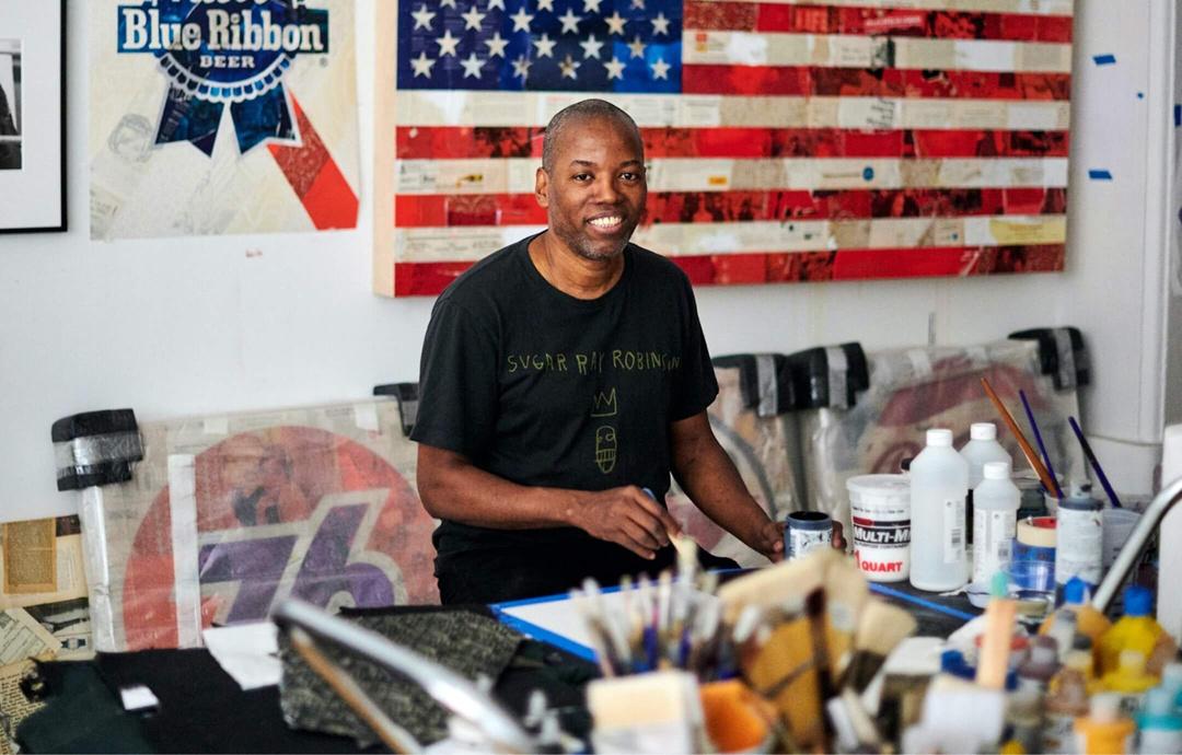 New York City native Cey Adams emerged from the downtown graffiti movement to exhibit alongside fellow artists Jean-Michel Basquiat and Keith Haring. He appeared in the historic 1982 PBS documentary Style Wars which tracks subway graffiti in New York. Cey’s work explores the relationship between transformation and discovery focusing on themes ranging from pop culture to race and gender relations His practice involves dismantling various imagery and paper elements to build multiple layers of color, texture, shadow, and light. Cey draws inspiration from 60’s pop art, sign painting, comic books, and popular culture As the Creative Director of hip hop mogul Russell Simmons’ Def Jam Recordings, he co-founded the Drawing Board, the label’s in-house visual design firm, where he created visual identities, album covers, logos, and advertising campaigns for Run DMC, Beastie Boys, LL Cool J, Public Enemy, Notorious B.I.G., and Jay-Z He exhibits, lectures and teaches art workshops at institutions including: MoMA, Brooklyn Museum, Walker Art Center, and MoCA Los Angeles.