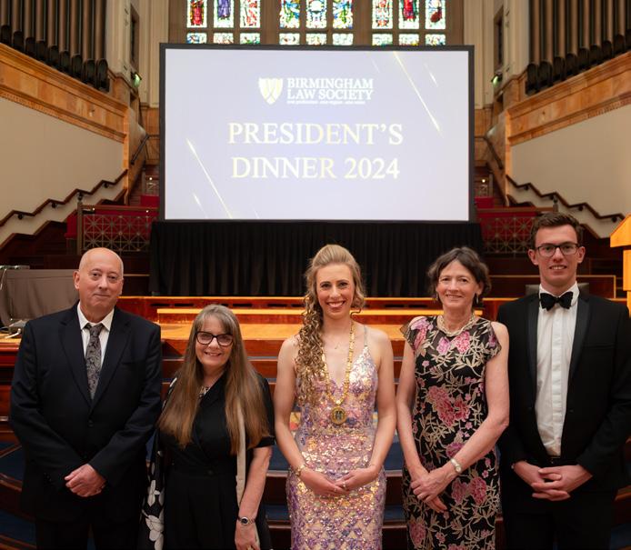 make a firm commitment to equal opportunities. We have introduced the new Birmingham Law Society Vacation Scheme in our member universities to enable aspiring lawyers from all backgrounds to gain the experience that will help them to achieve their ambitions. In January, we provided some practical education to our midlevel members to support them in navigating the path to partnership and beyond. We have introduced three brand new categories into our Legal Awards to champion the diverse range of talent that exists within our local profession. We have built closer relationships with the Greater Birmingham Chambers of Commerce and many other professional bodies, to support our members to strengthen their business connections. We have brought our events to the suburbs so that those who may find it difficult to travel to the city centre can still get involved. We have hosted a Legal Leaders Roundtable to hear from our senior voices, and given junior members the chance to present to our Council and contribute to our future direction. Through these initiatives and building blocks, I hope to leave a legacy that reflects the power of unity and the boundless potential that lies within all of us.