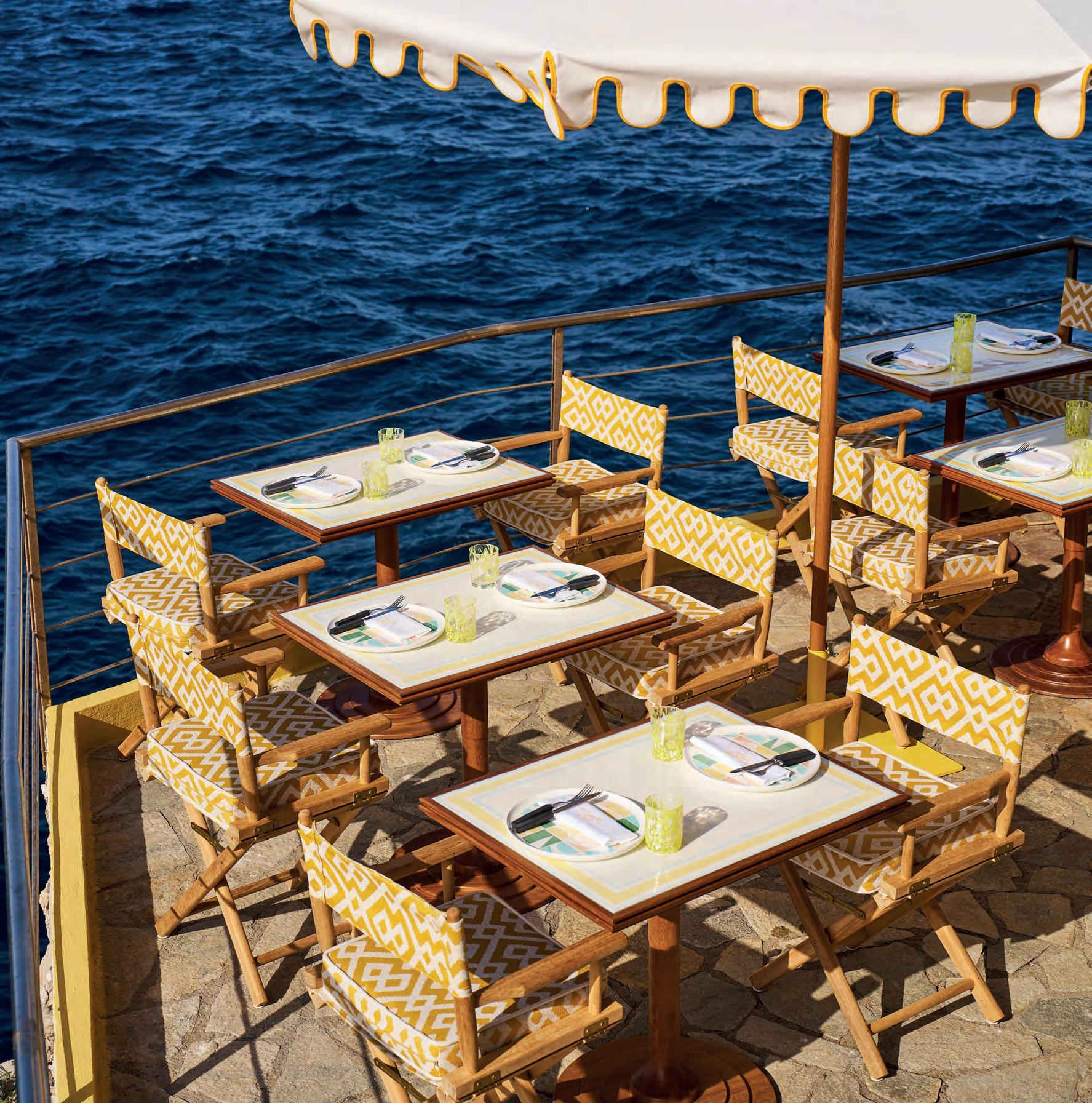 Le sedie Ginger sono anche nel nuovo ristorante a-Ma-Re. Di Capri, questa volta in versione gialla GINGER CHAIRS ARE ALSO IN THE NEW A-MA-RE. CAPRI, THIS TIME IN A YELLOW VERSION