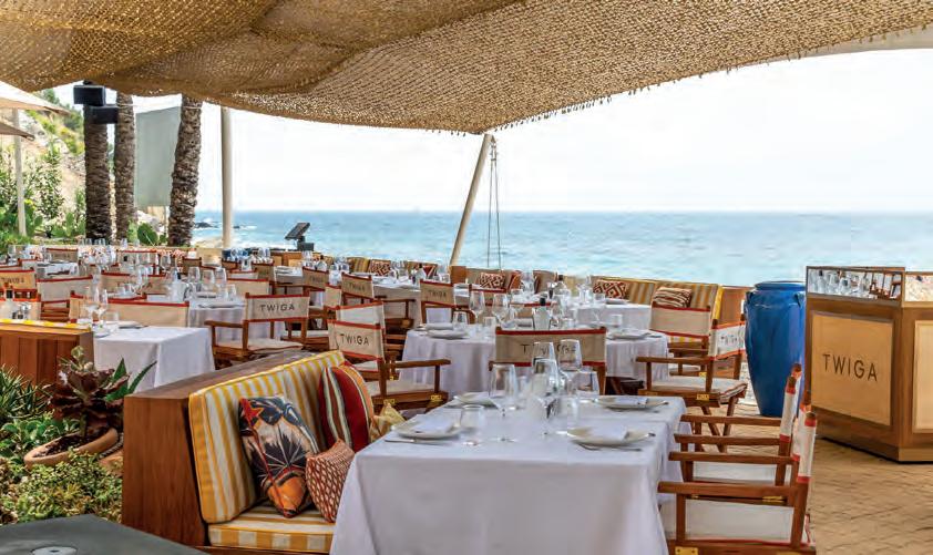 CUSTOMISED FABRICS FOR GINGER AT TWIGA BAY BENJAMIN, WHERE UNOPIÙ ALSO MADE THE TABLES, CHAIRS AND PARASOLS, AS WELL AS THE SUN LOUNGERS AND PARASOLS ON THE BEACH