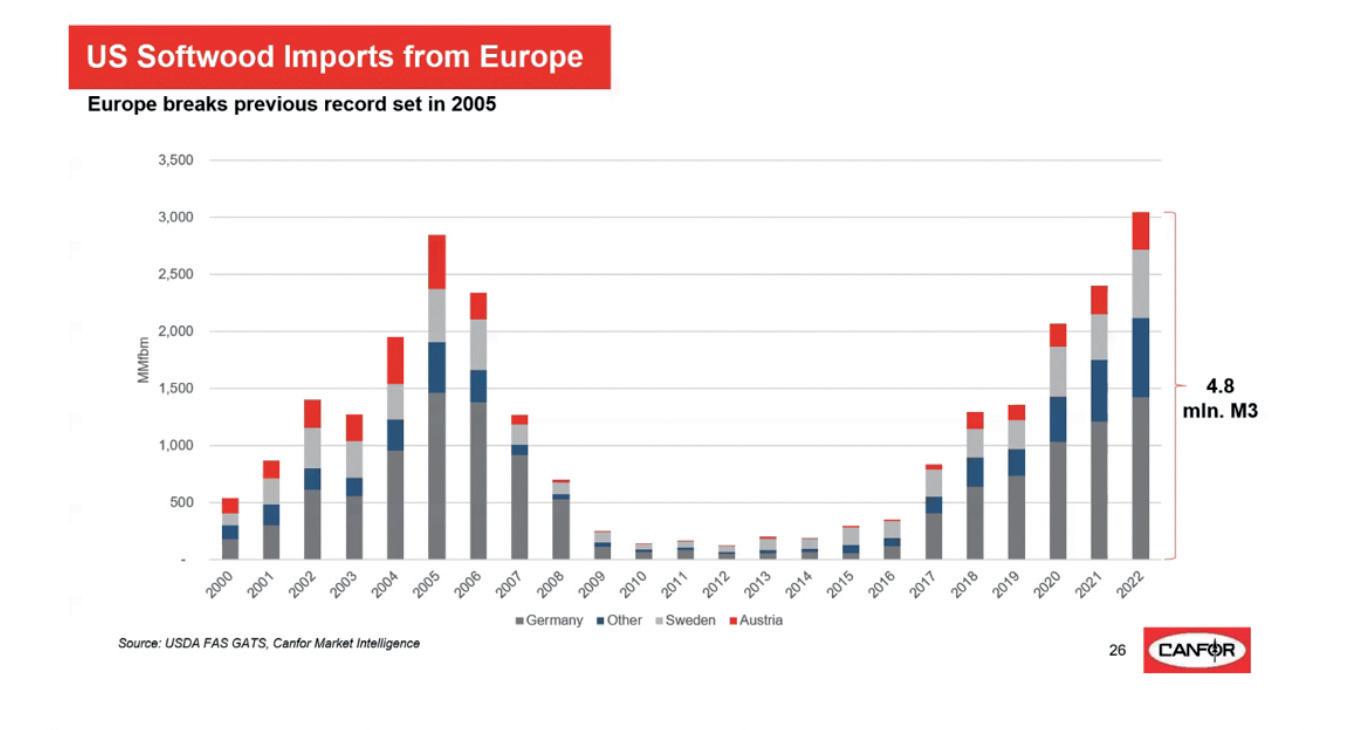 Data to highlight is the level of exports equal to 4.8M m3 that Europe has allocated to the United States of