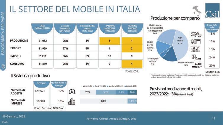 Nonostante un contesto molto sfidante, la produzione di mobili italiana ha mostrato uno dei rimbalzi più notevoli tra i Paesi europei rispetto ai livelli pre-pandemici, e si prevede un graduale miglioramento per la domanda nel 2024 e una crescita nel 2025.