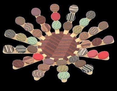 Sapelli, Okoumè, Palma Nera, Teak, Wengé, Zebrano.