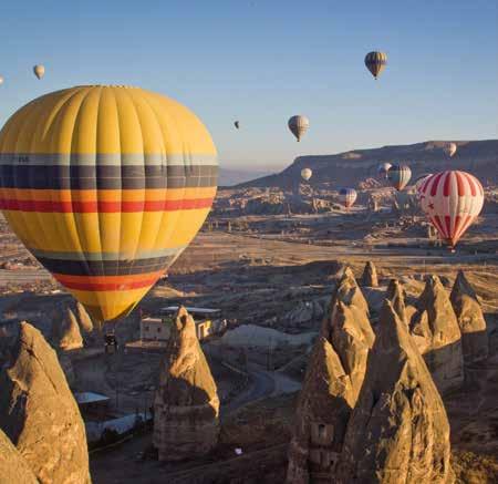 Een van de meest bijzondere manieren om dit stuk van Turkije te ontdekken is per luchtballon. Vanaf het moment dat de zon opkomt tot ’s avonds de lucht roodoranje kleurt, zweven er honderden luchtballonnen over het bijzondere landschap. Maar ook als je met beide benen op de grond blijft, is Cappadocië het beste te omschrijven als een waar sprookje.