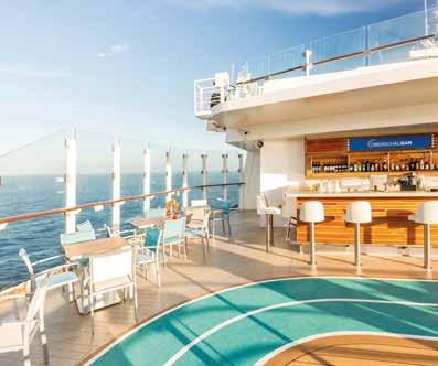 carte ontbijt, lunch en diner of een breed scala aan opties in de Lido Market, het buffet-style restaurant met verschillende thema stations. Uiteraard zijn deze opties gewoon inclusief. Met de verschillende specialiteitenrestaurants maken de smaakpapillen net zo’n mooie reis als jijzelf. Waag je in de avond op Music Walk voor onvergetelijke optredens met artiesten van wereldklasse. Van voortreffelijke kamermuziek bij Lincoln Center Stage tot klassieke rock hits bij Rolling Stone Rock Room en meezingen bij Billboard Onboard tot de voetjes van de vloer tot laat in de avond bij B.B. King’s Blues Club. Op ieder cruiseschip vind je diverse bars en lounges, zwembaden, jacuzzi’s, sportruimtes, een luxe spa en een casino. Kom tot rust tijdens een ontspannen massage, leer iets nieuws bij een boeiende lezing of geniet van de gezelligheid tijdens een wijnproeverij.