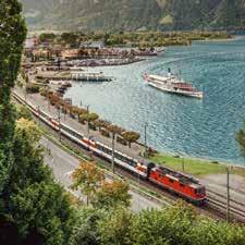 Een panoramareis per trein en boot. De Gotthard Panorama Express (april – oktober) brengt bezoekers van het mediterrane Ticino via de wereldberoemde Gotthardpanoramaroute en door het machtige Reussdal in Uri naar Flüelen. Van de panoramatrein met persoonlijke reisbegeleiding stap je