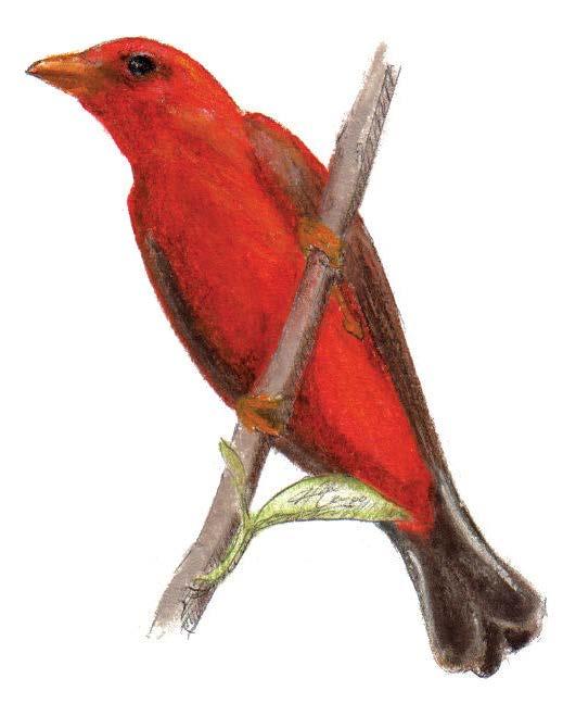 Ave de tamaño medio, presenta una coloración roja muy intensa. Al igual que la piranga ludoviciana, está presente en la región durante la temporada invernal. Su plumaje evidencia su presencia al contrastar con el fondo verde de las zonas arboladas donde habita.