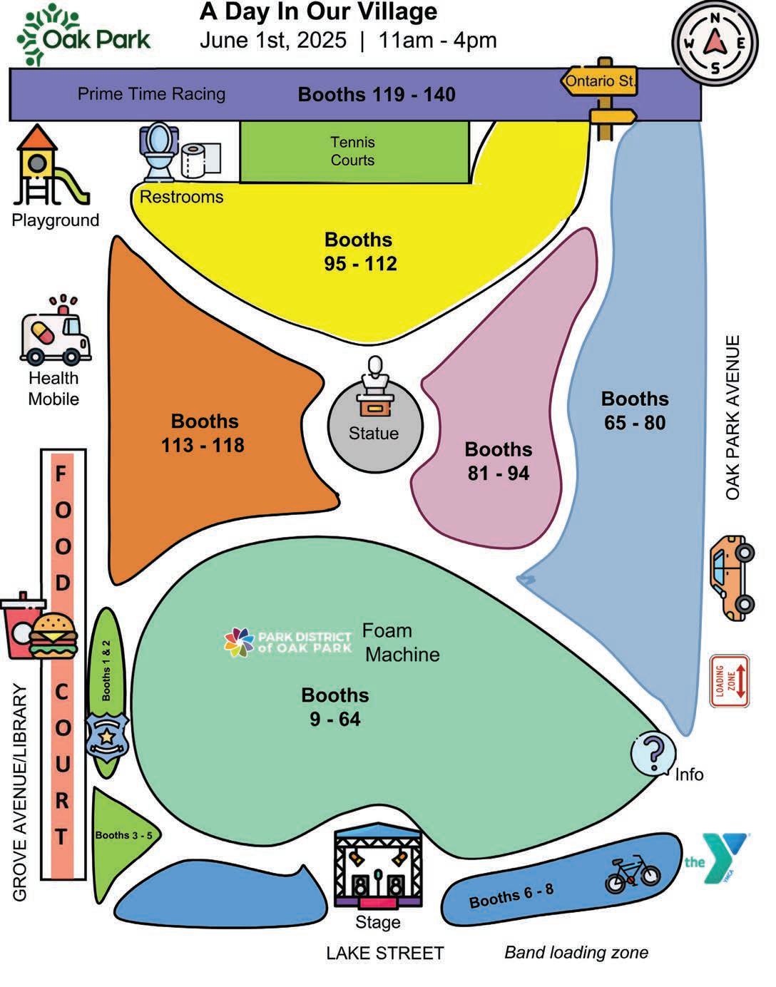 A Day in Our Village is an event, organized by volunteers, to celebrate the vitality and the rich advantages of our diverse community, and provide the opportunity for all residents, their families, and friends to come learn about the myriad of organizations (civic, cultural, social services, religious and business) and share in this Oak Park experience